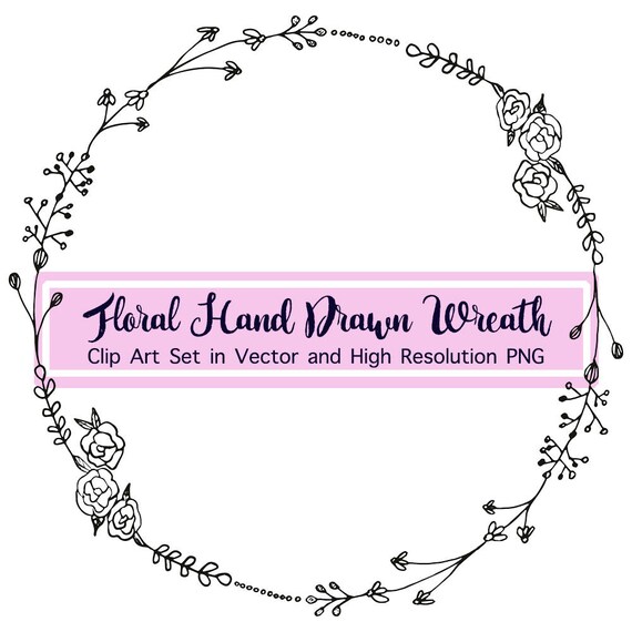 Black And White Floral Wreath Vector Hand Drawn Floral Etsy