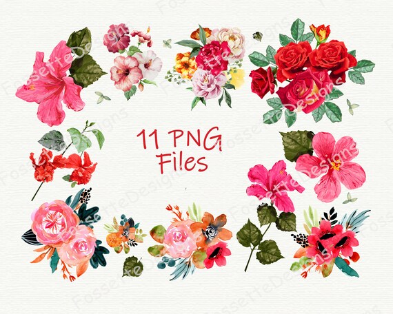 Vector Floral Heart Clipart Watercolor Flowers Heart Clipart Etsy