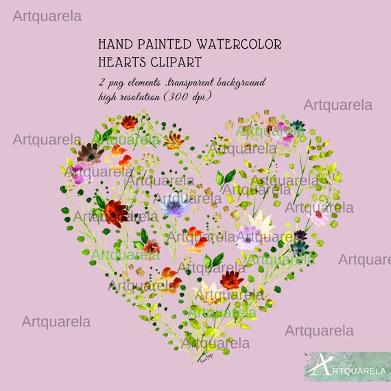 Vector Floral Heart Clipart Watercolor Flowers Heart Clipart Etsy