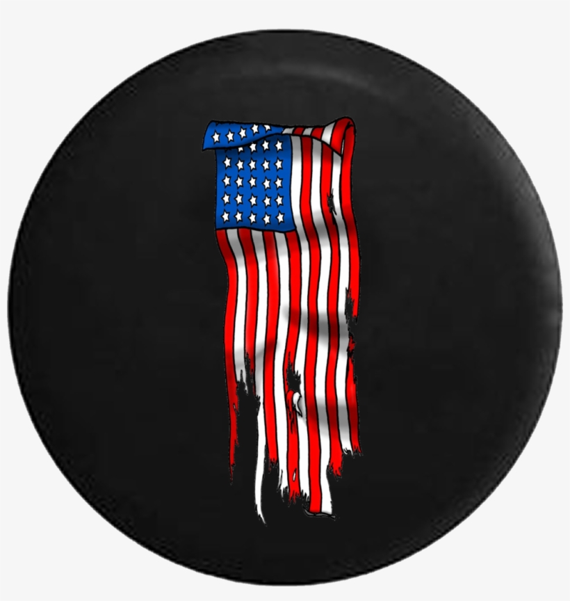 Vertical Tattered American Flag Jeep Camper Spare Tire Canal St